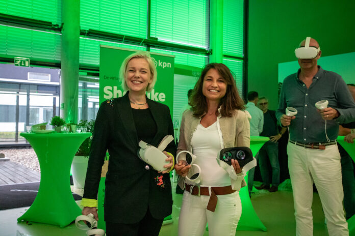 Pictured: KPN executive board members Marieke Snoep and Chantal Vergouw were the first to visit the virtual store with VR glasses, under the watchful eye of Martin Boers (Retail).